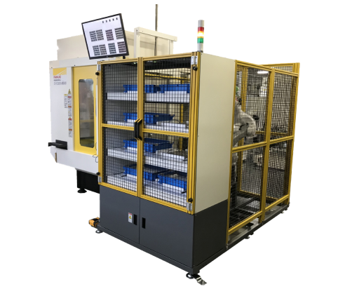 5軸マシニングセンターなどのワークをバイスごと搬送。多品種変量生産の実現に貢献します。