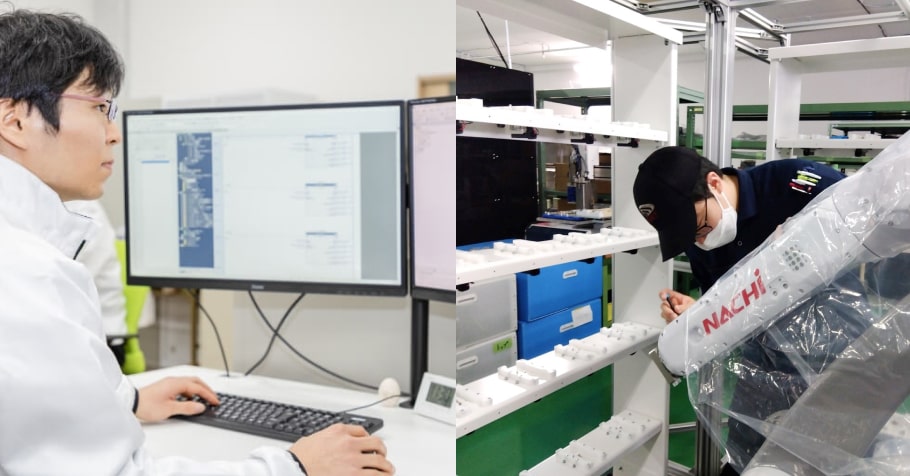 開発したロボットは、実際に自分たちが使用しながら、改善を続けています。機械加工工場の実使用を行い、さらなる課題や改善点を拾い上げ、すぐさま自動化ロボットの商品企画や改良に反映し、より効率的な生産フィードバックを行っています。